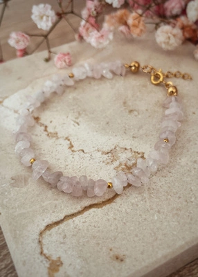Armband vergoldet mit Natursteinen Rosenquarz gehackt