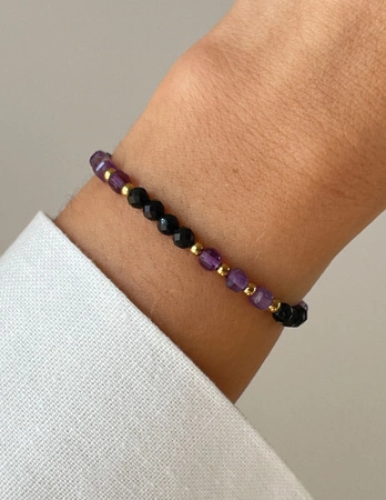 Amethyst-Gummiband-Armband mit Hämatit - Konzentration, Erfolg, Schutz
