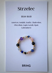 Elastischer Ring Natursteine Erdbeerquarz, Labradorit