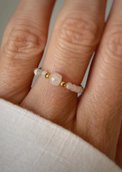 Ring Flexible Natursteine Morganit und Herz Silber vergoldet