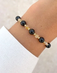 Gummiband-Armband schwarzer Turmalin Citrin Schutz und Wohlstand