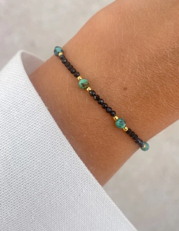Fadenarmband mit schwarzem Turmalin und Türkis - Schutz, Beziehungen, Kreativität