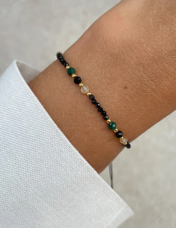 Fadenarmband mit schwarzem Turmalin, Malachit und Citrin - Schutz und Wohlstand