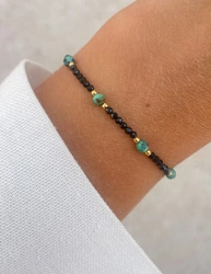 Fadenarmband mit schwarzem Turmalin und Malachit - Schutz, Mut, Entschlossenheit
