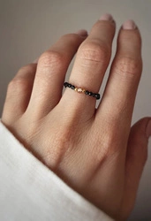 Elastischer Ring aus schwarzem Spinell, durchsetzt mit vergoldeten Perlen