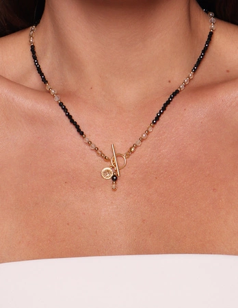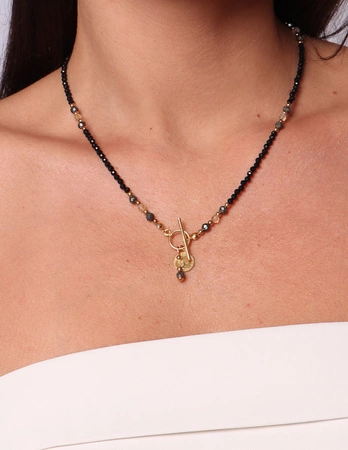 Schwarze Turmalin-Knopfhalskette mit Anhänger