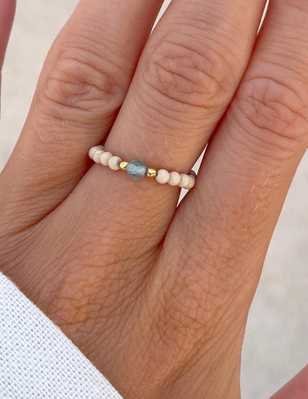 Elastischer Ring aus beigem Jaspis, Kunzit und vergoldetem 925er Silber