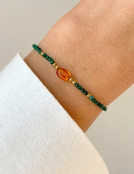 Armband aus Malachit, Cognac-Bernstein und Hämatit in Goldfarbe