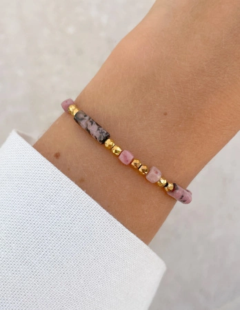 Rhodonit-Gummiband-Armband mit Hämatit - Liebe, Verständnis, Unterstützung