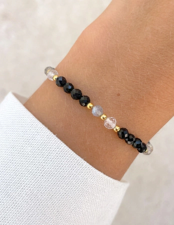 Turmalin-Mix-Gummiband-Armband mit Hämatit - Schutz, Fülle, Vitalität, Beziehungen